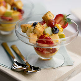 - To make the Fruit Salad: Place the orange zest, orange juice, and lemon juice in a large bowl.